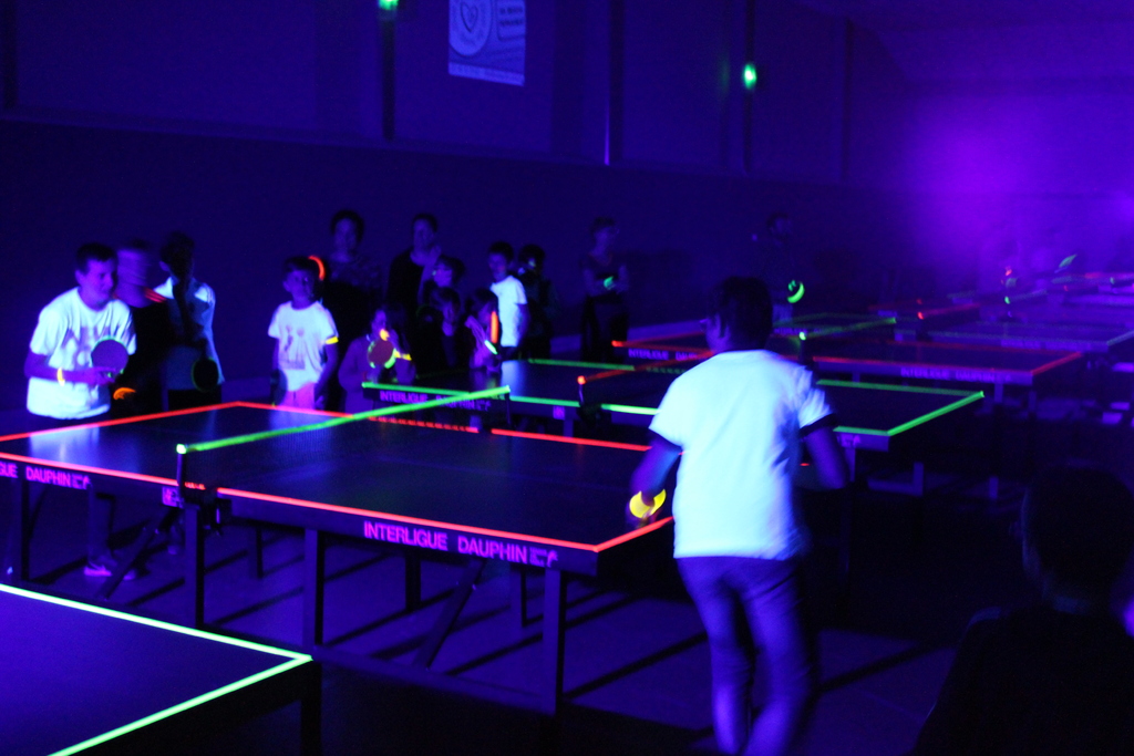 C'est simple, on éteint la lumière, on met des bandes fluo autour des tables de ping pong, on prend des balles fluo, on met des lumières noires et on s'amuse en jouant dans une ambiance musicale.
